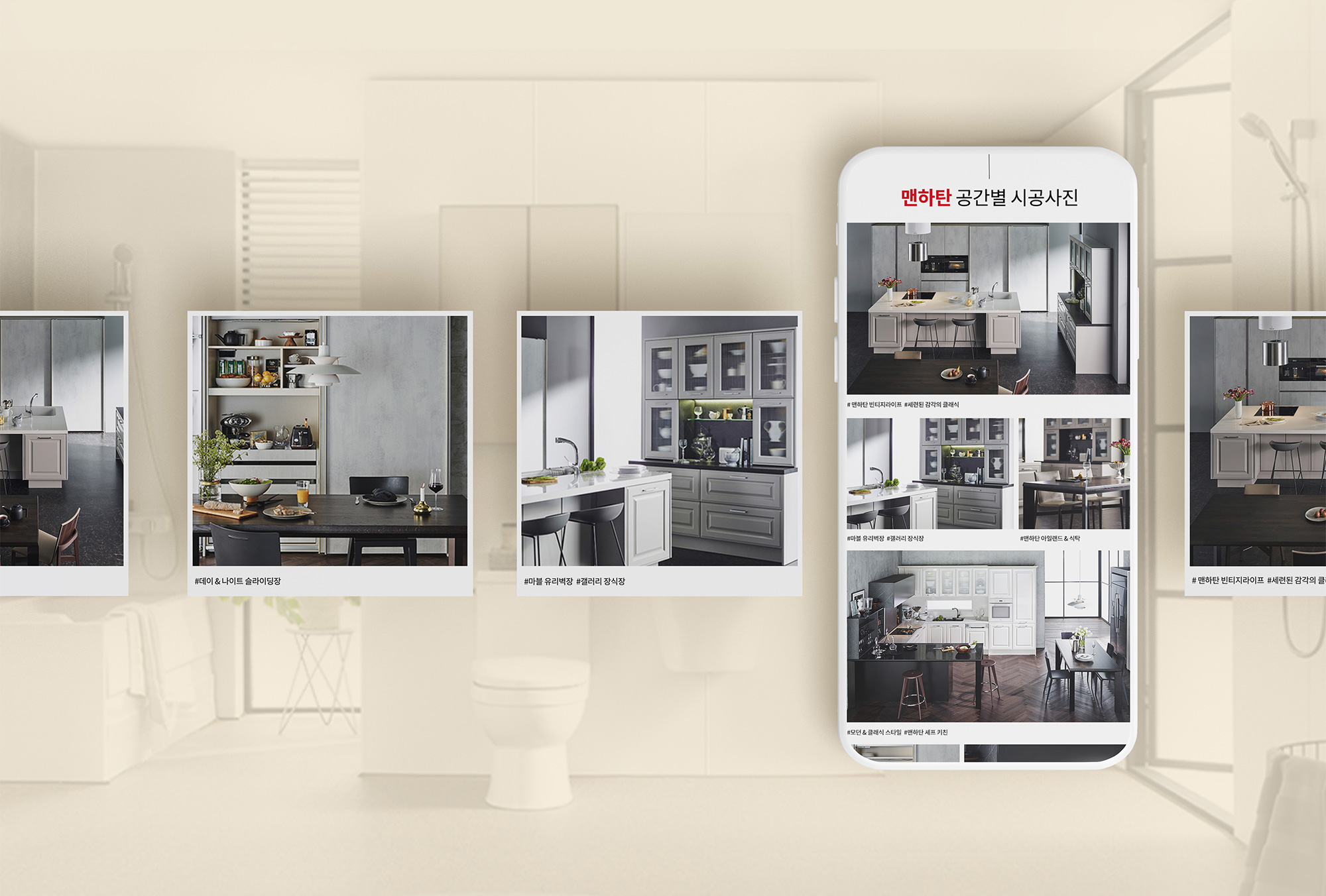 맞춤형 가구, 욕실전문 한샘키친 서면의 인쇄물 및 관련 각종 디자인 작업에 100% 참여하여 카페의 스킨과 포스팅 제작, 그리고 명함 및 다양한 인쇄물 디자인을 진행하였습니다.